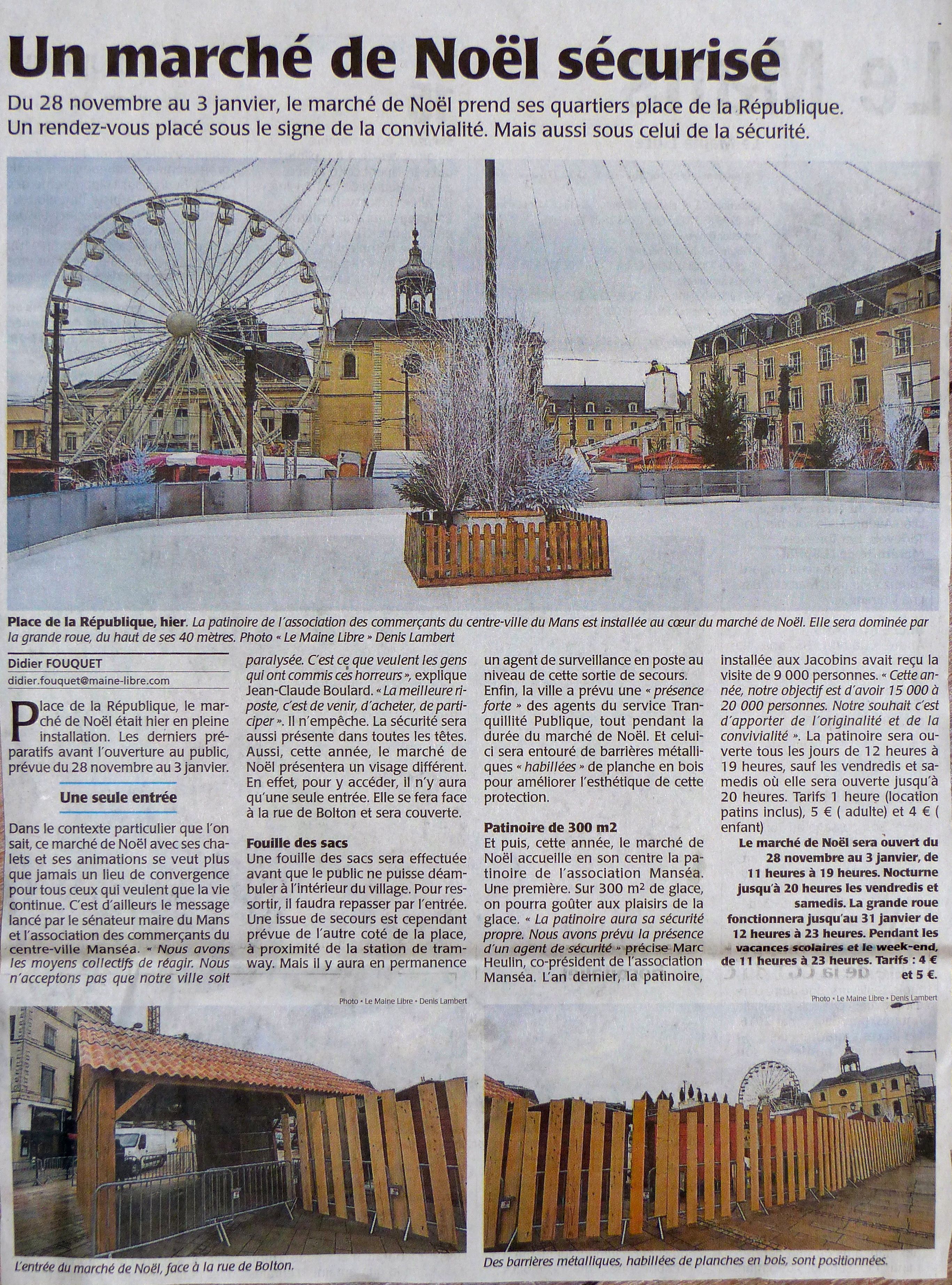 Depuis samedi dernier (28 novembre), l’apiculteur est à nouveau dans son chalet de Noël, place de la République, au coeur du Mans. Premières impressions positives : malgré le contexte, vous êtes là ! Vous avez tenu à affirmer que la vie continuait et que rien n’entraverait votre liberté d’aller et venir li-bre-ment.