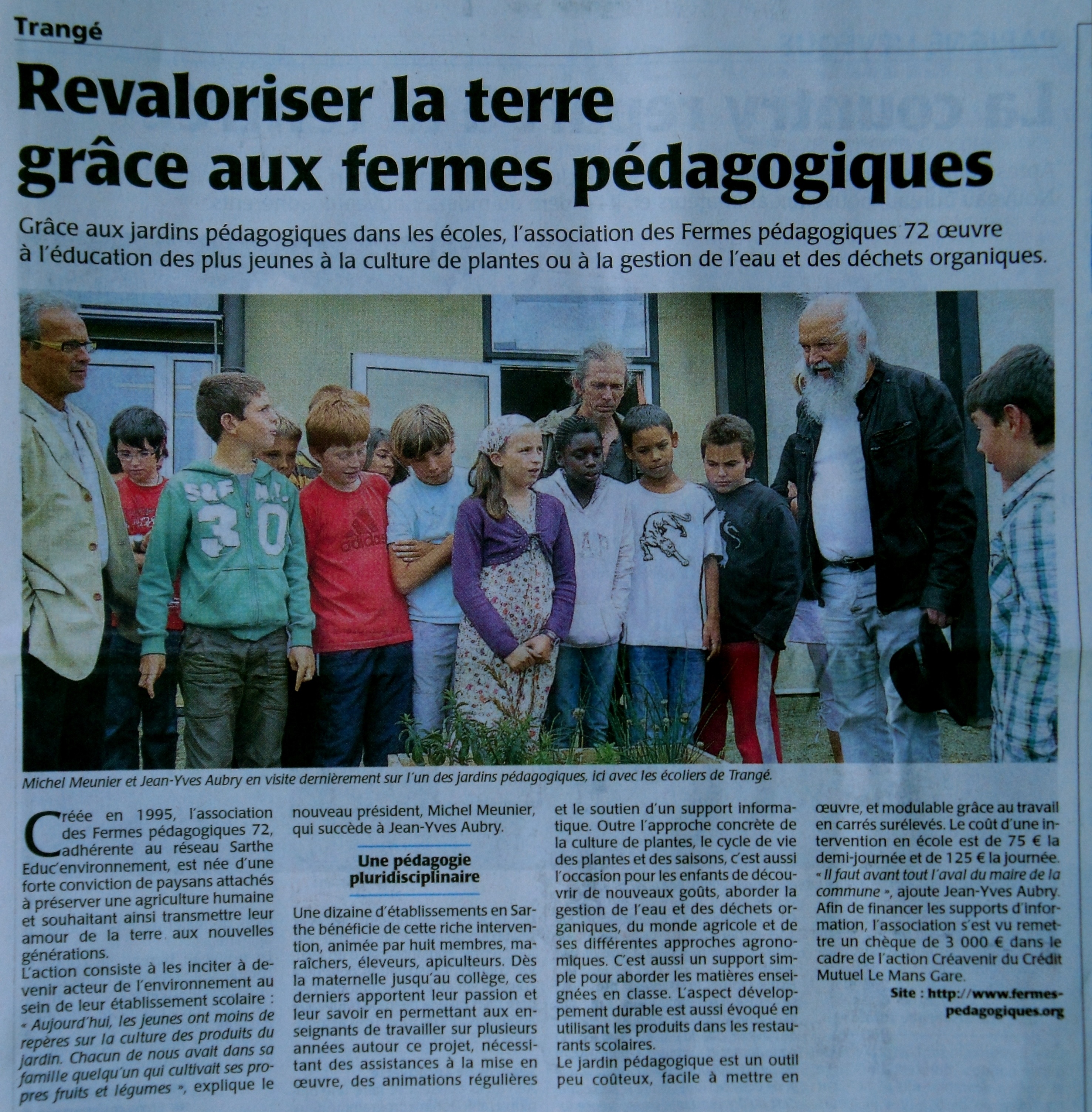 L’action des Fermes Pédagogiques (Maine Libre 26 juin 2011) Publié par michelmeunier72 Le Maine Libre, 26 juin 2011 Une action encore méconnue des Fermes Pédagogiques en Sarthe : créer des jardins (pédagogiques, eux aussi…) dans les écoles, et les animer ensuite pendant la durée nécessaire. 47.994289 0.108827