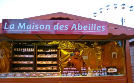 Bon, je ne suis pas là pour prêcher, mais pour vous donner rendez-vous au chalet de la Maison des Abeilles, au pied de la Grande Roue, à vingt pas de la station de tram « République ». Le chalet est ouvert chaque jour de 11 heures à 19 heures, ou à 20 heures les vendredis et samedis, et même un peu plus tard le dernier samedi avant Noël (20 décembre). Vous y trouverez du miel, des pains d’épices diversifiés et la mythique crème de noisette au miel.